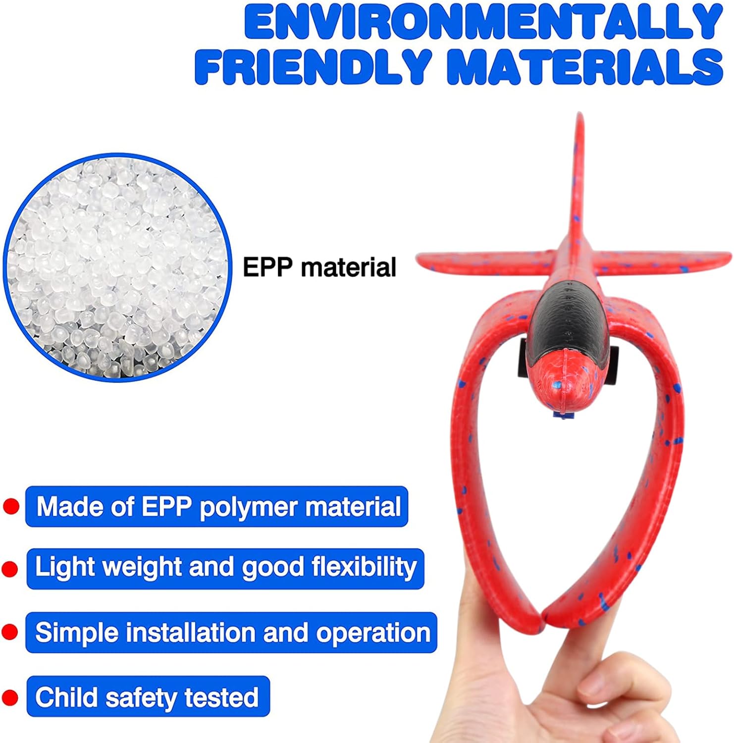 Safe materials and easy to use: The aircraft toys are made of EPP polymer materials, which are lightweight, flexible and impact-resistant. The foam plane will not completely harm your children. Simply insert the wings into the fuselage and use them with the starting cannon, children can easily master the toy and play with it.